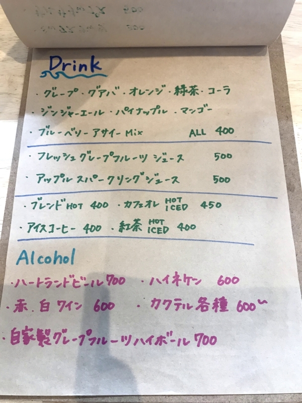 ビールも本格的にハートランドとハイネケン!アルコールしか目がいってなかったんですが、ブルーベリーアサイーMixなんてのも美味しそう。