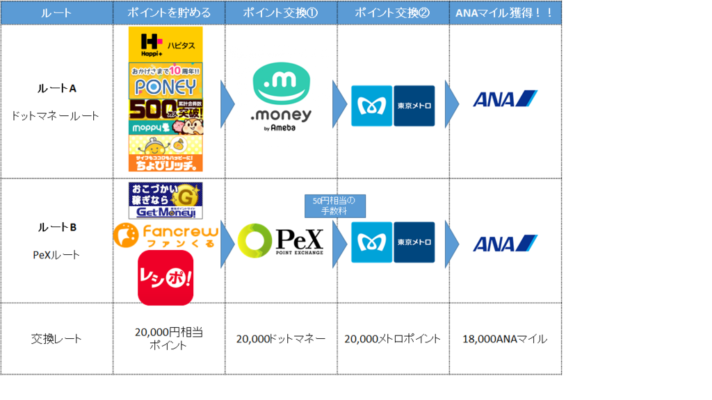 - ソラチカルートには、.money経由とPeX経由があるので、ポイントサイトに応じて適切なルートでANAマイルに交換しましょう。