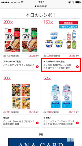レシポ!掲載商品をお近くのコンビニもしくはスーパーなどで購入し、 そのレシート画像を送付するだけで、お得にポイントがゲットできます。