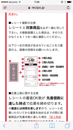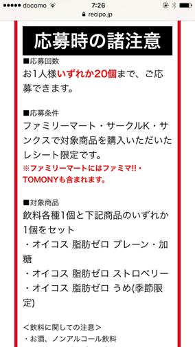 ③応募時の諸注意を確認します。今回はコンビニが限定ということで、近所のファミマで買ってきました!