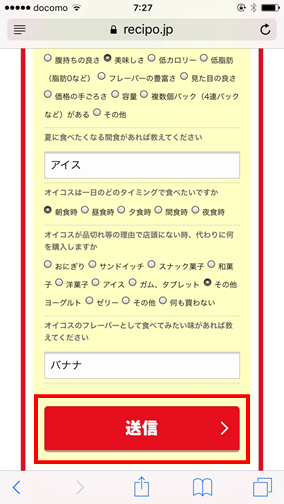 ⑦全て回答したら「送信」を押します。